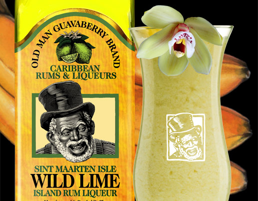 Put ice in blender, add SM Wild Lime Liqueur, Cream of Coconut, ½ chopped banana, pineapple pieces or juice. Blend well. Garnish with pineapple, toasted coconut & fresh nutmeg.
